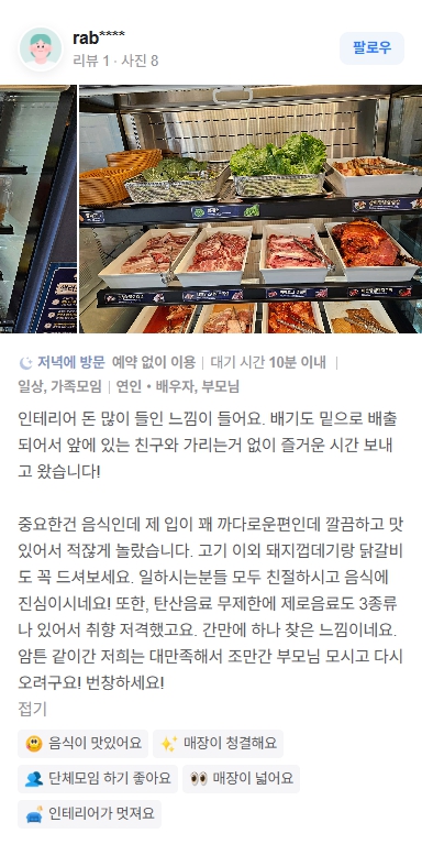 기존 무한리필 고깃집의 틀을 깨는 차별화된 맛과 서비스!