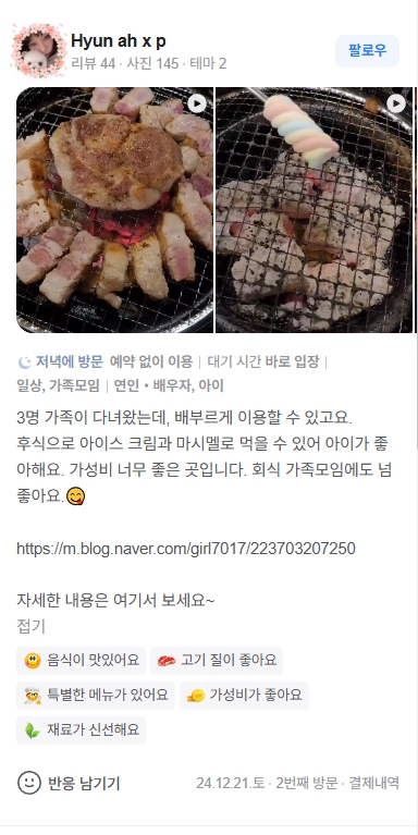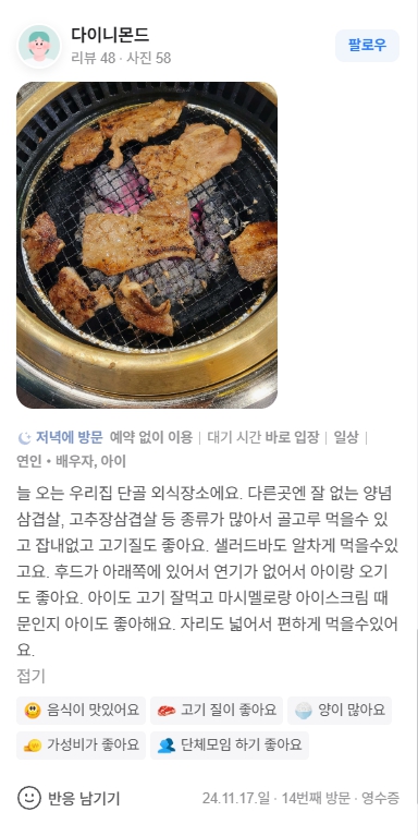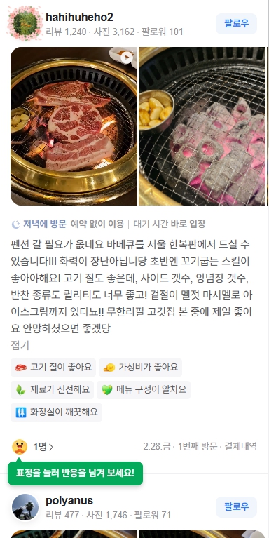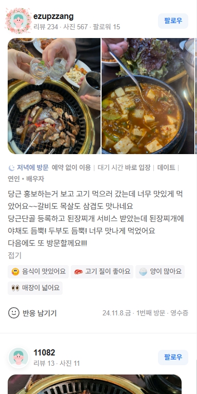 해시태그와 리뷰를 통해 고객의 생생한 경험을 공유하고 있습니다.