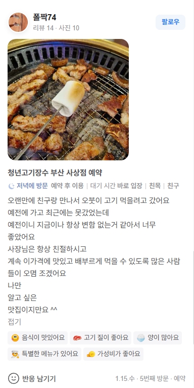 청년고기장수가 최근 트렌디한 디자인으로 리뉴얼을 마쳤습니다.